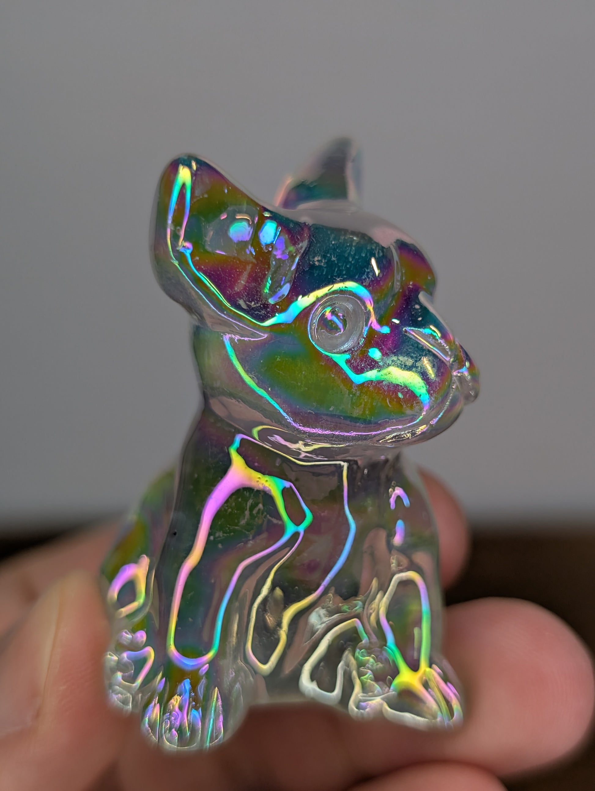 Aura Coated Clear Quartz Frenchie Carving (W84)