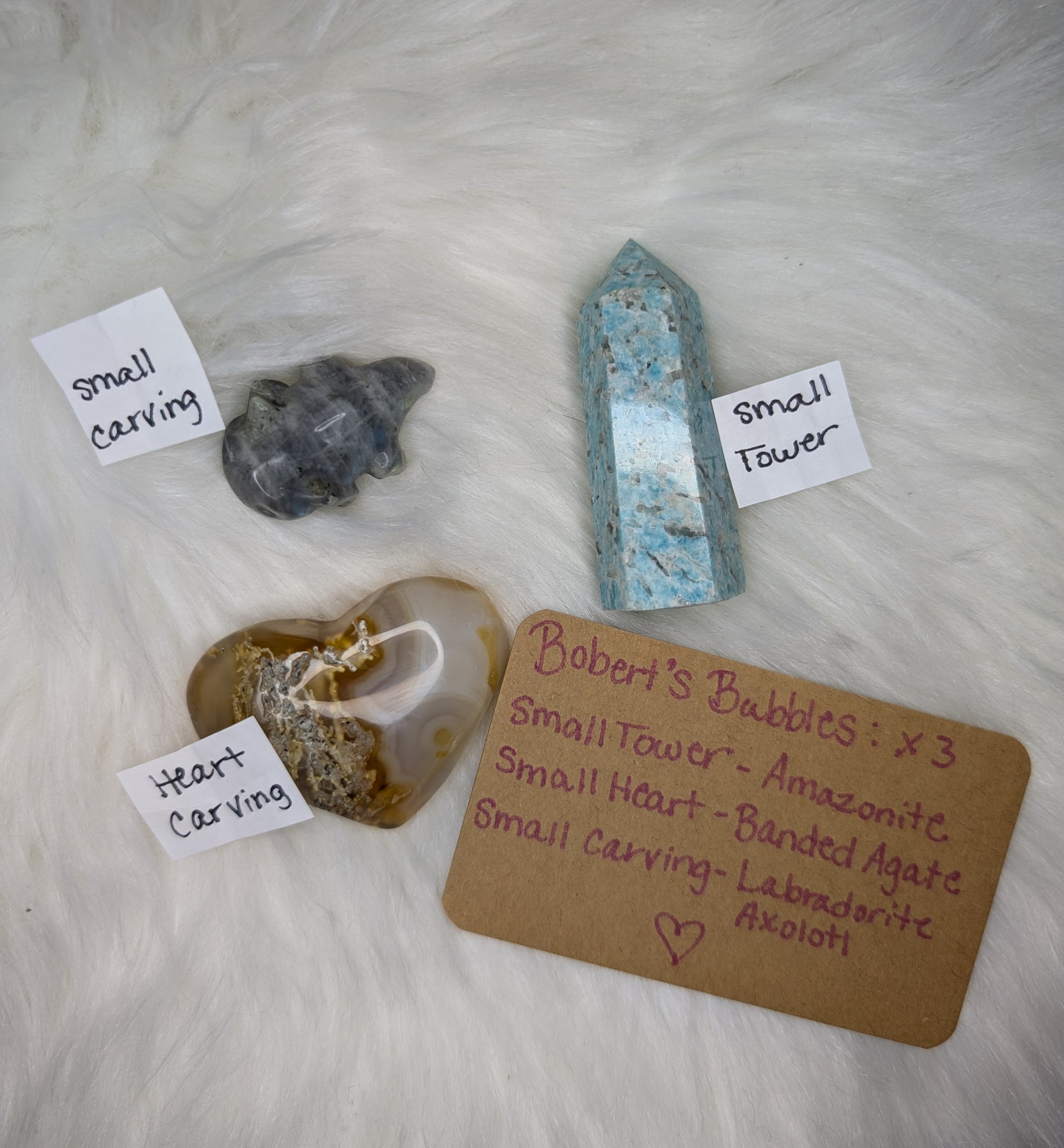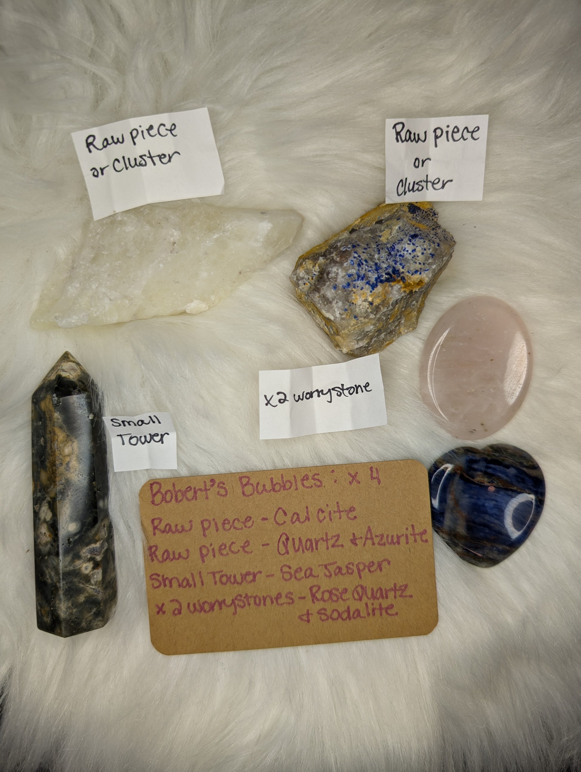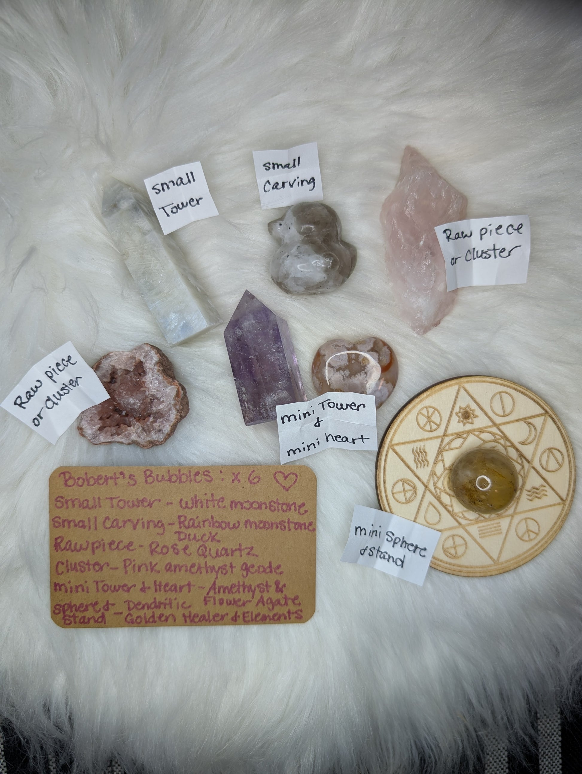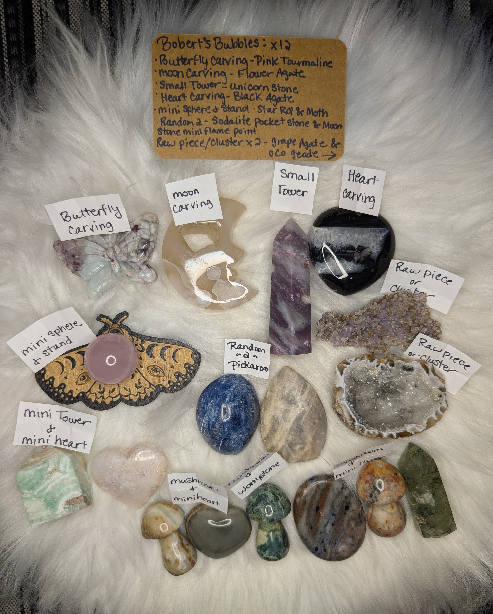 Bobert's Bubbles are little capsules with mystery item types inside! Some capsules have 1 item while others have 2. Each bubble is $6 and Rob will intuitively hand pick your items.