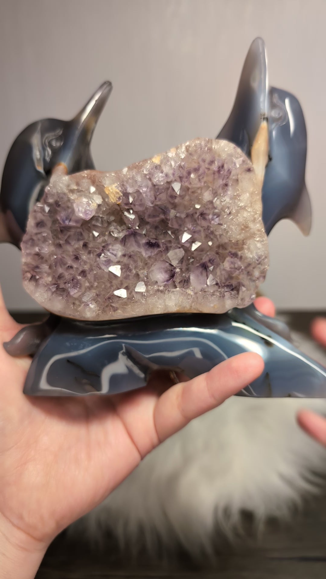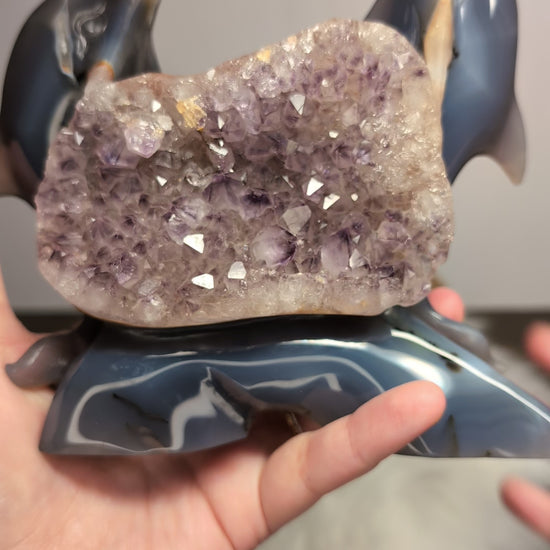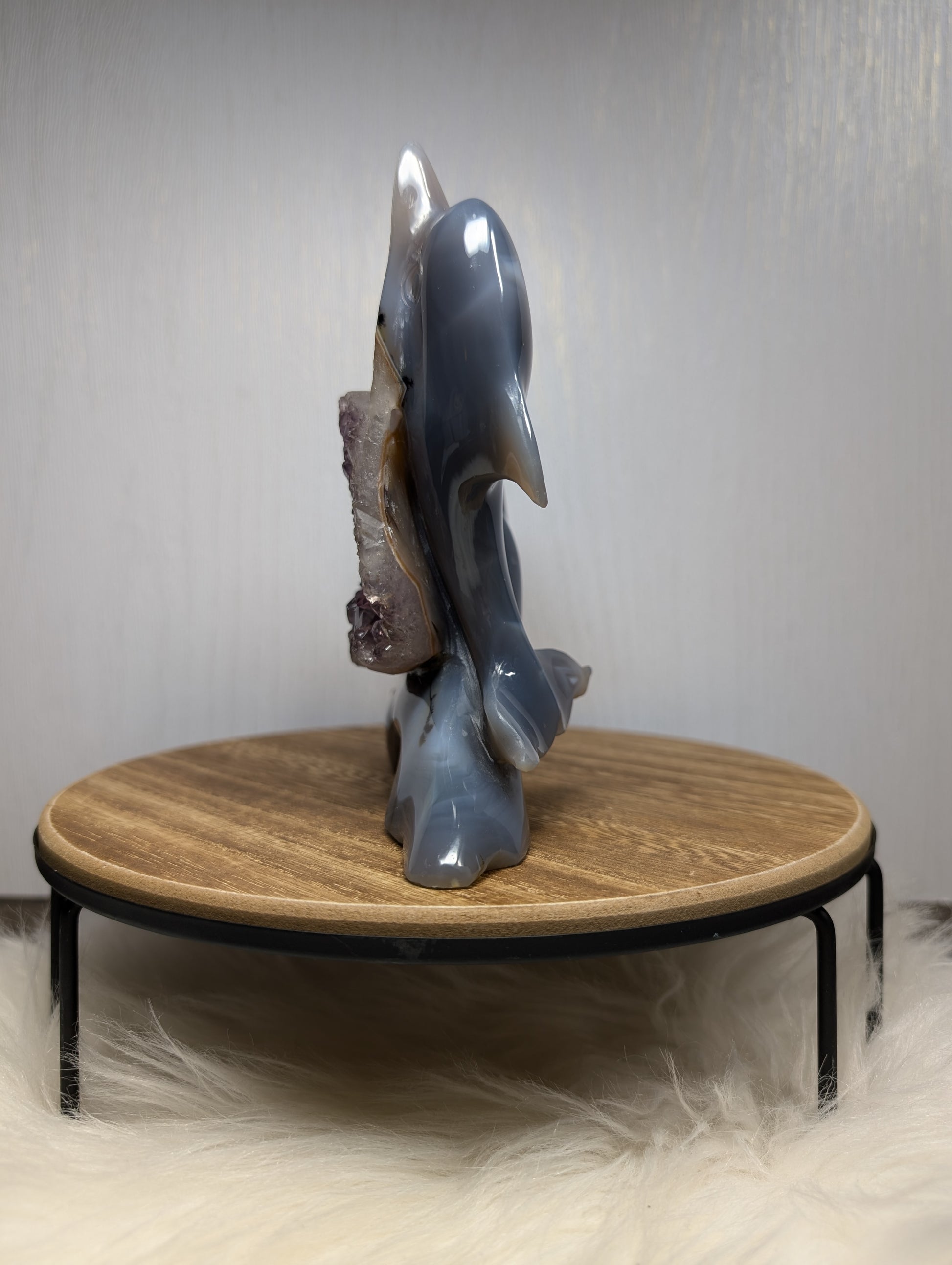 Druzy Agate Amethyst Dolphin w/ Dendrites