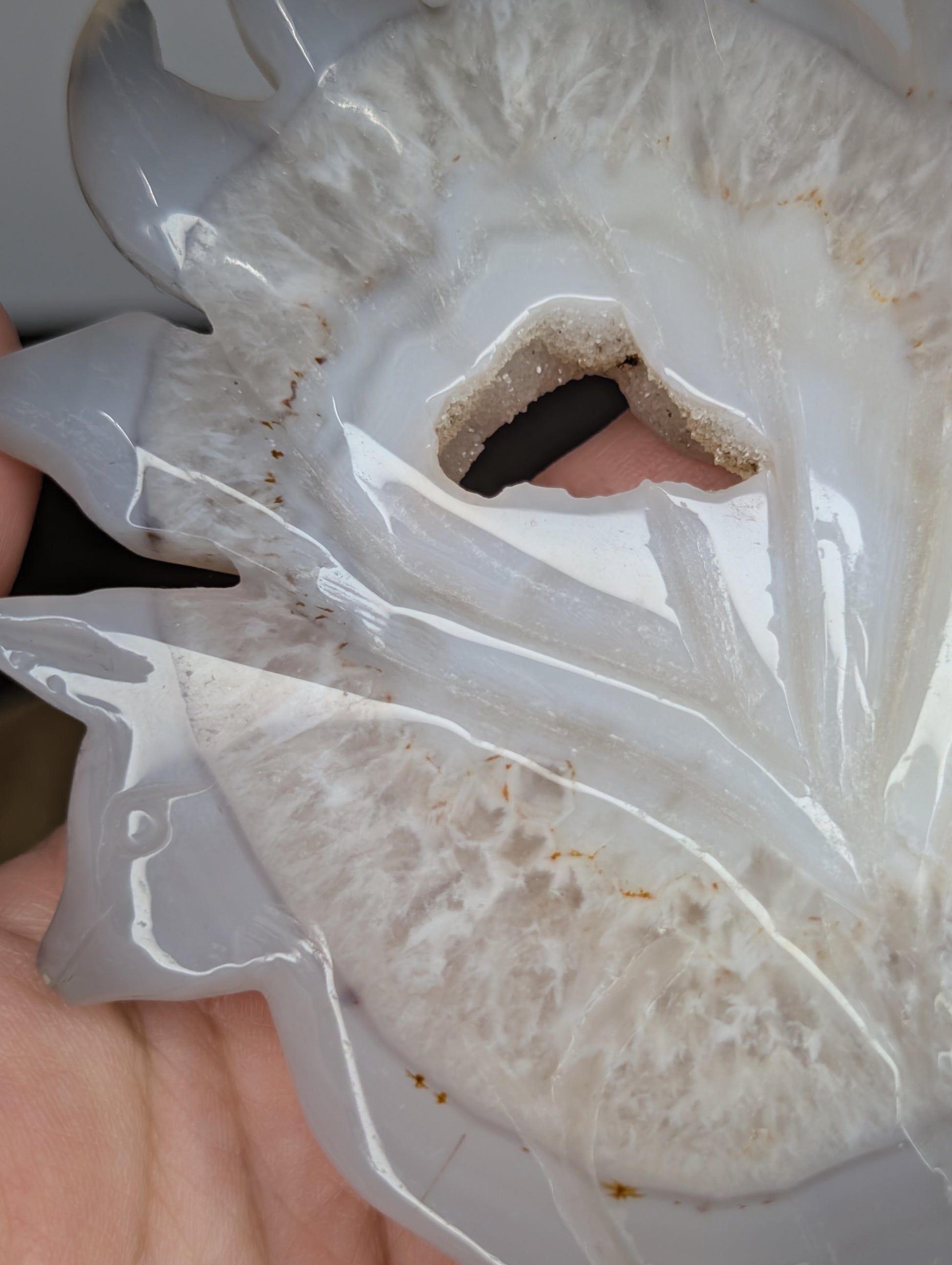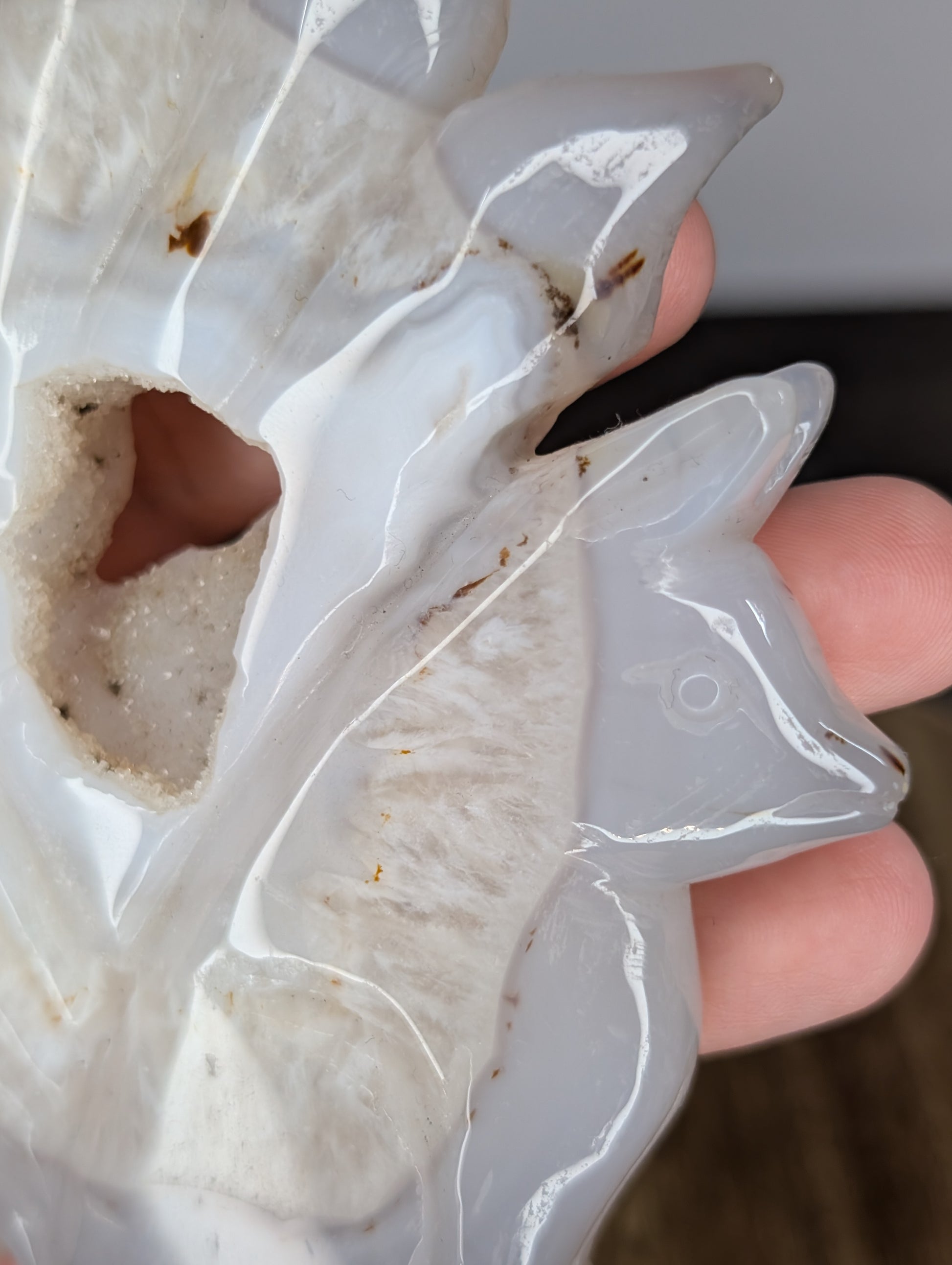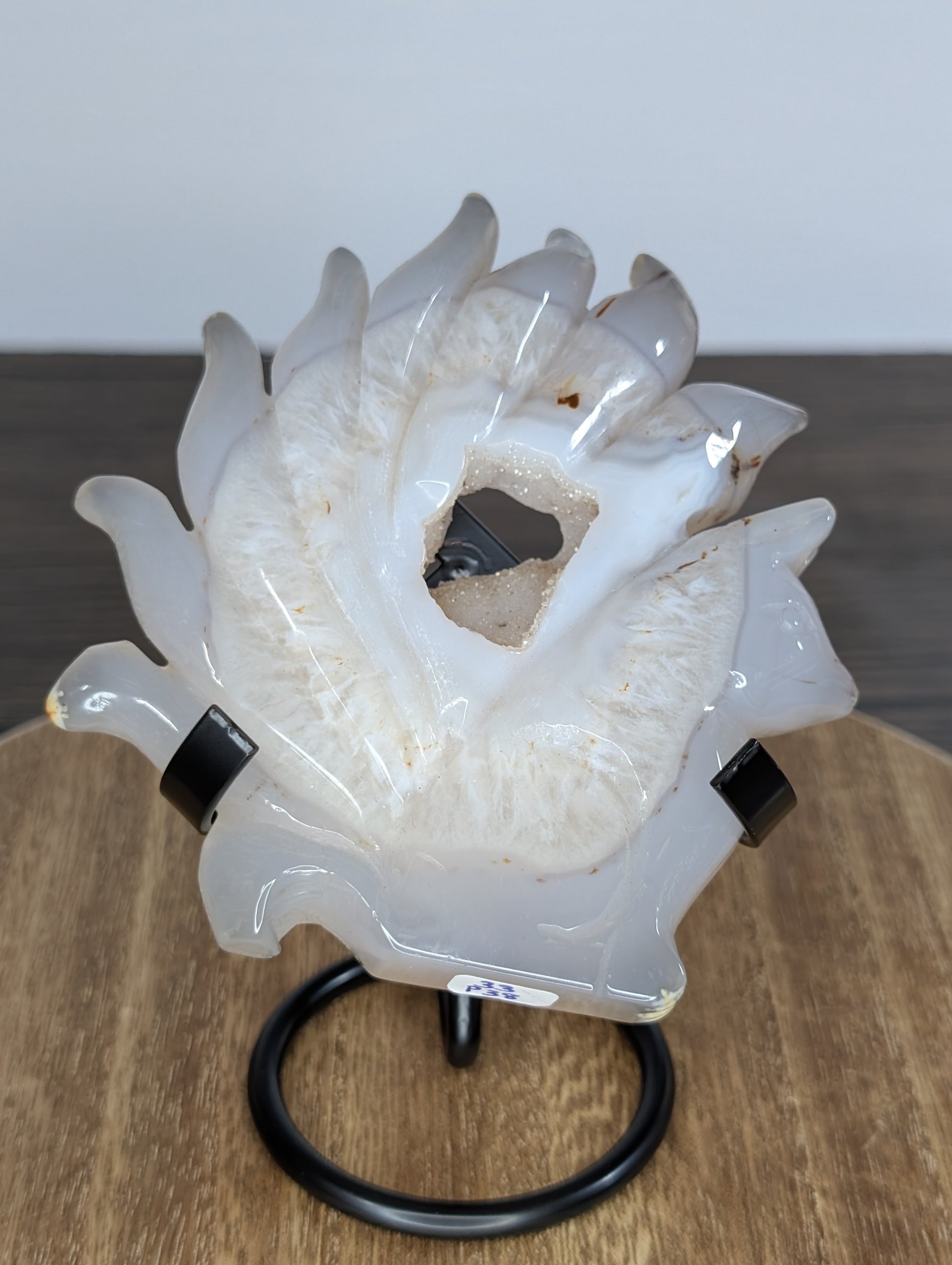 Druzy Agate Nine Tail Fox Carving w/ Stand (P38)