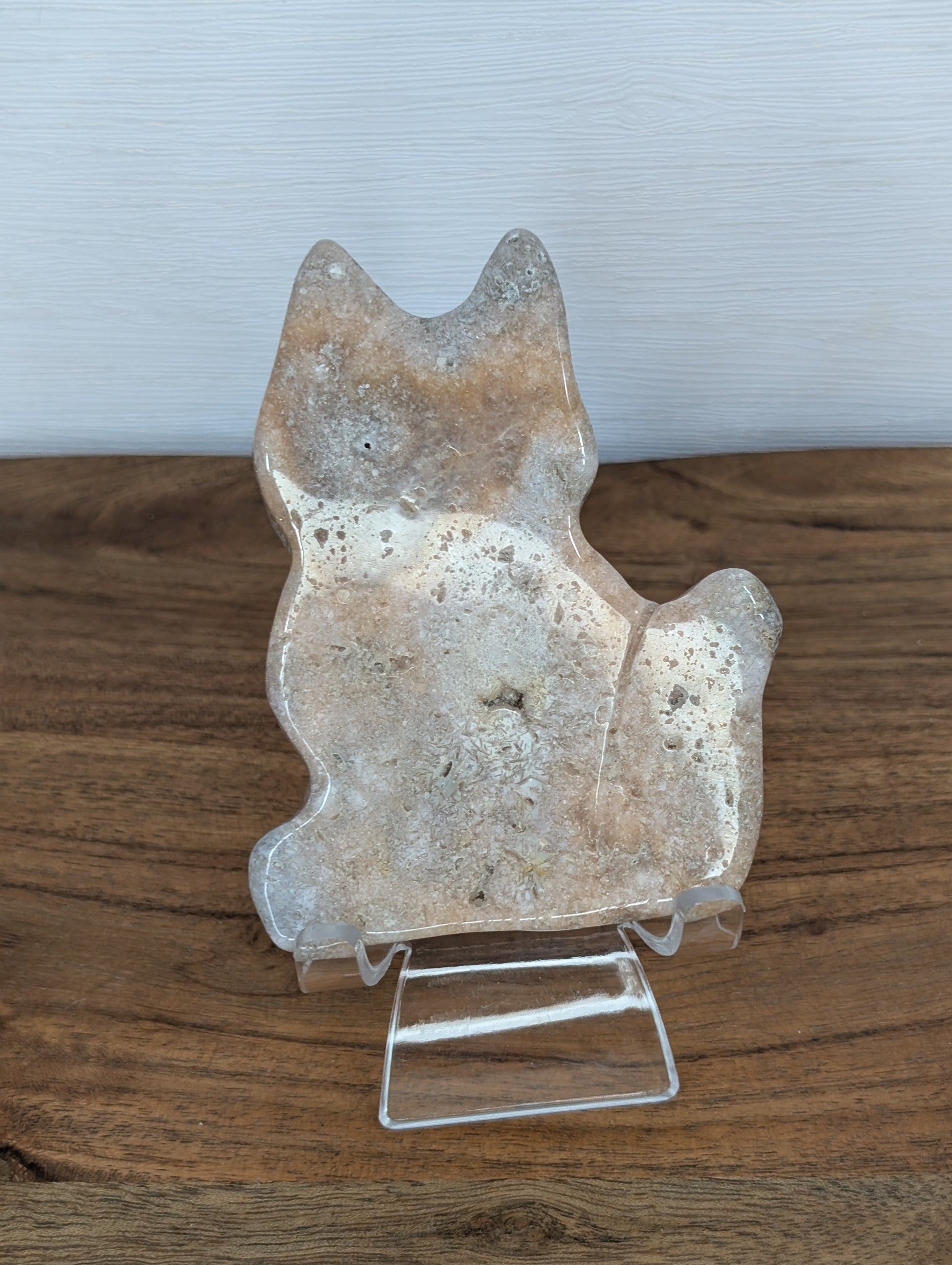 This pink amethyst cat carving does not self stand and will include an acrylic holder as shown in the photos ~