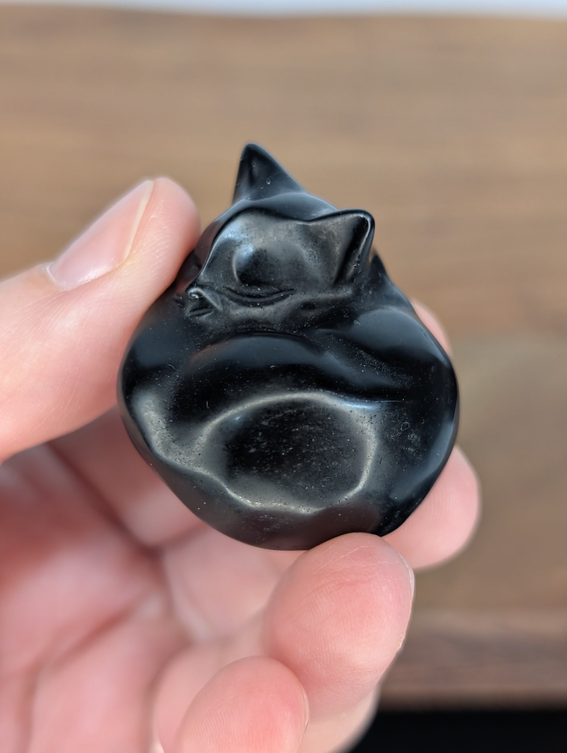 Obsidian Sleeping Cat Carving