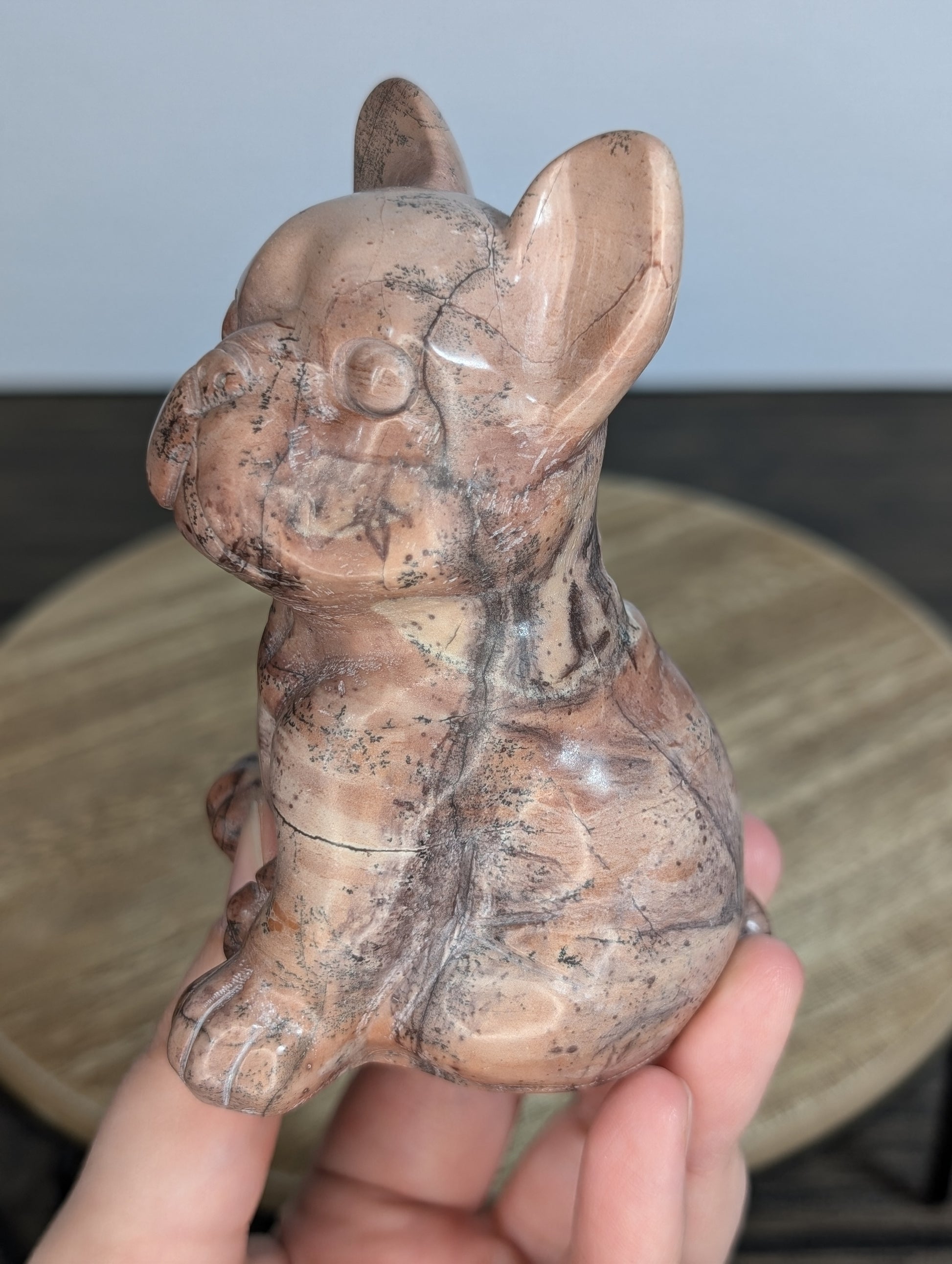 Pink Picture Jasper Frenchie Carving (AS34)