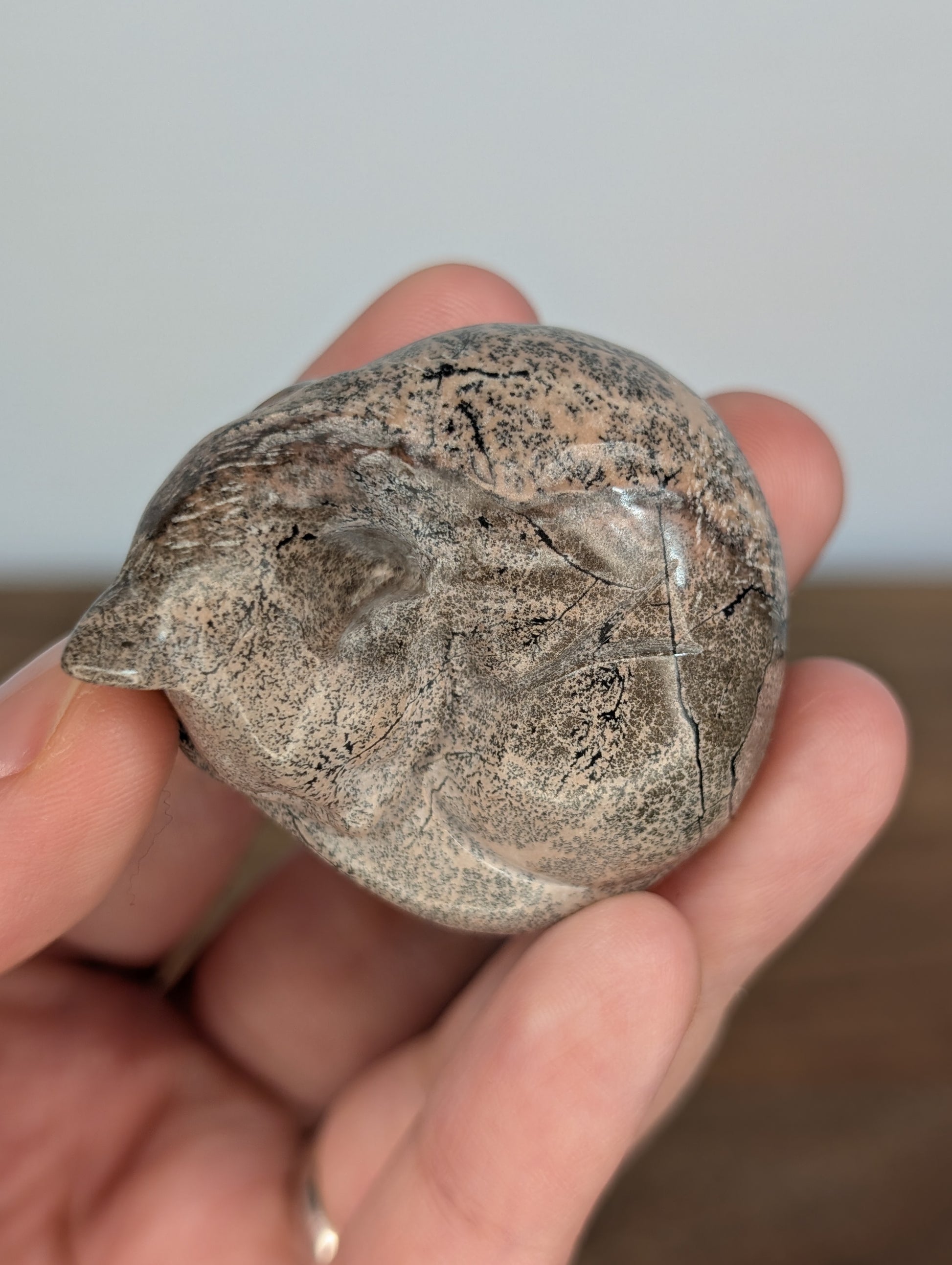 Pink Picture Jasper Sleeping Cat Carving (AC31)