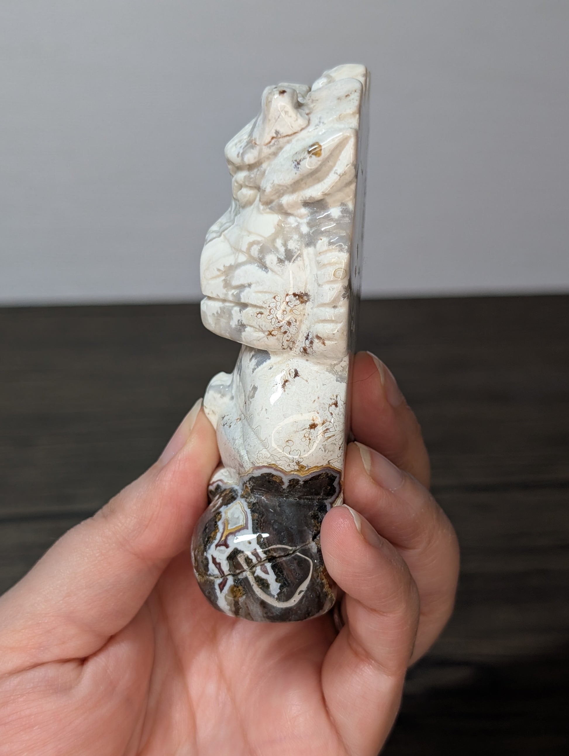 Red Mexican Crazy Lace Agate Meditating Dragon Carving