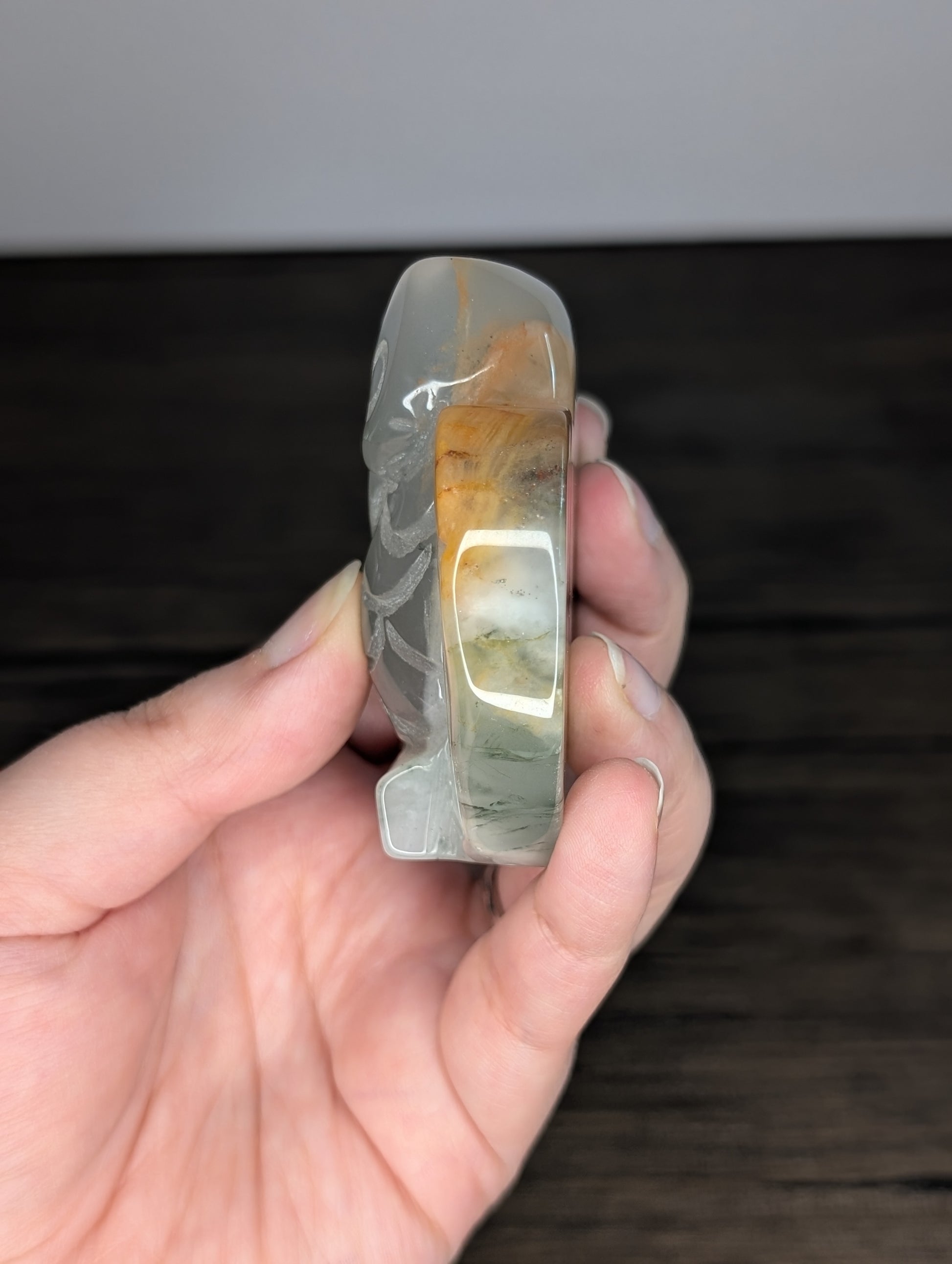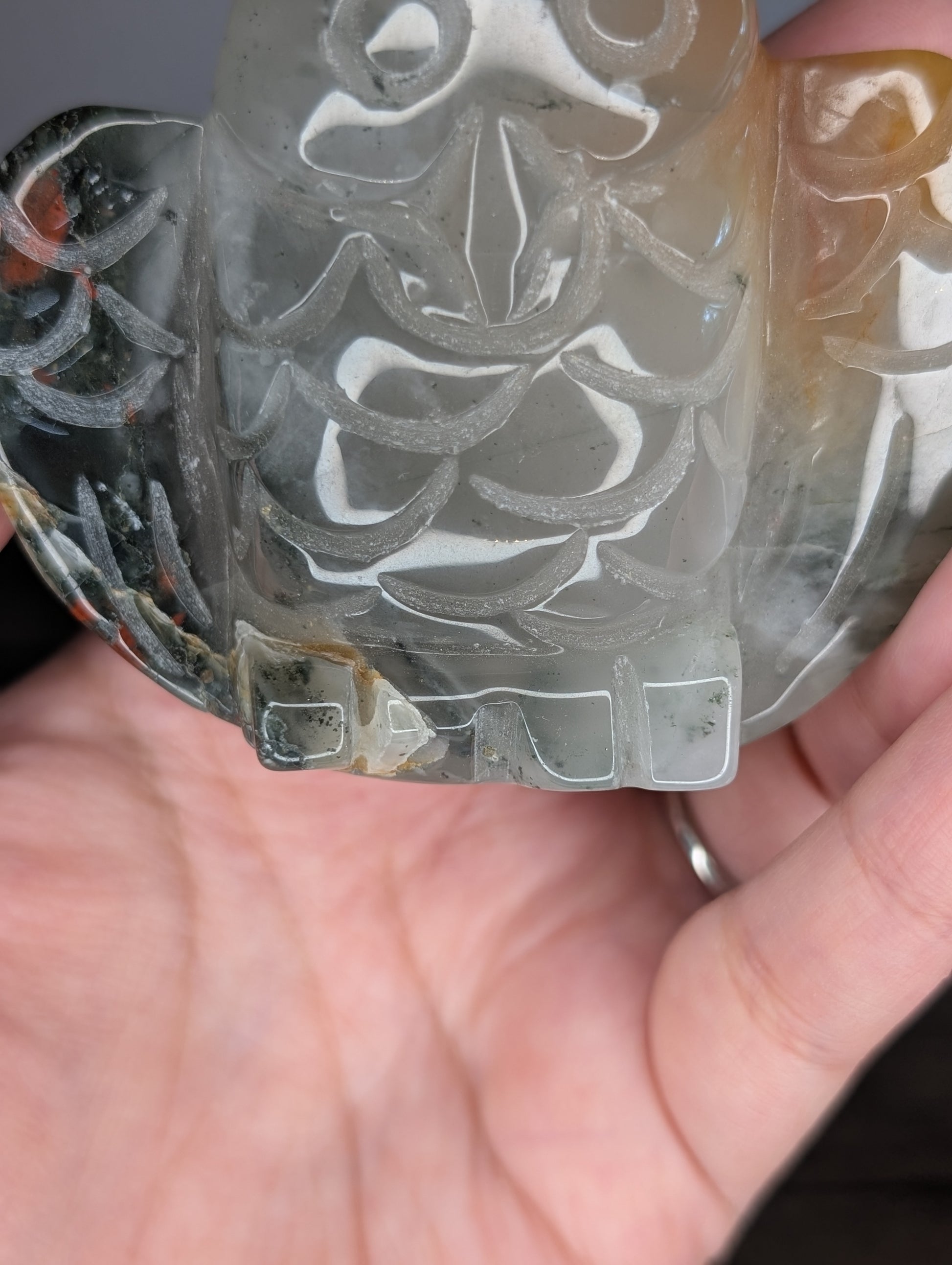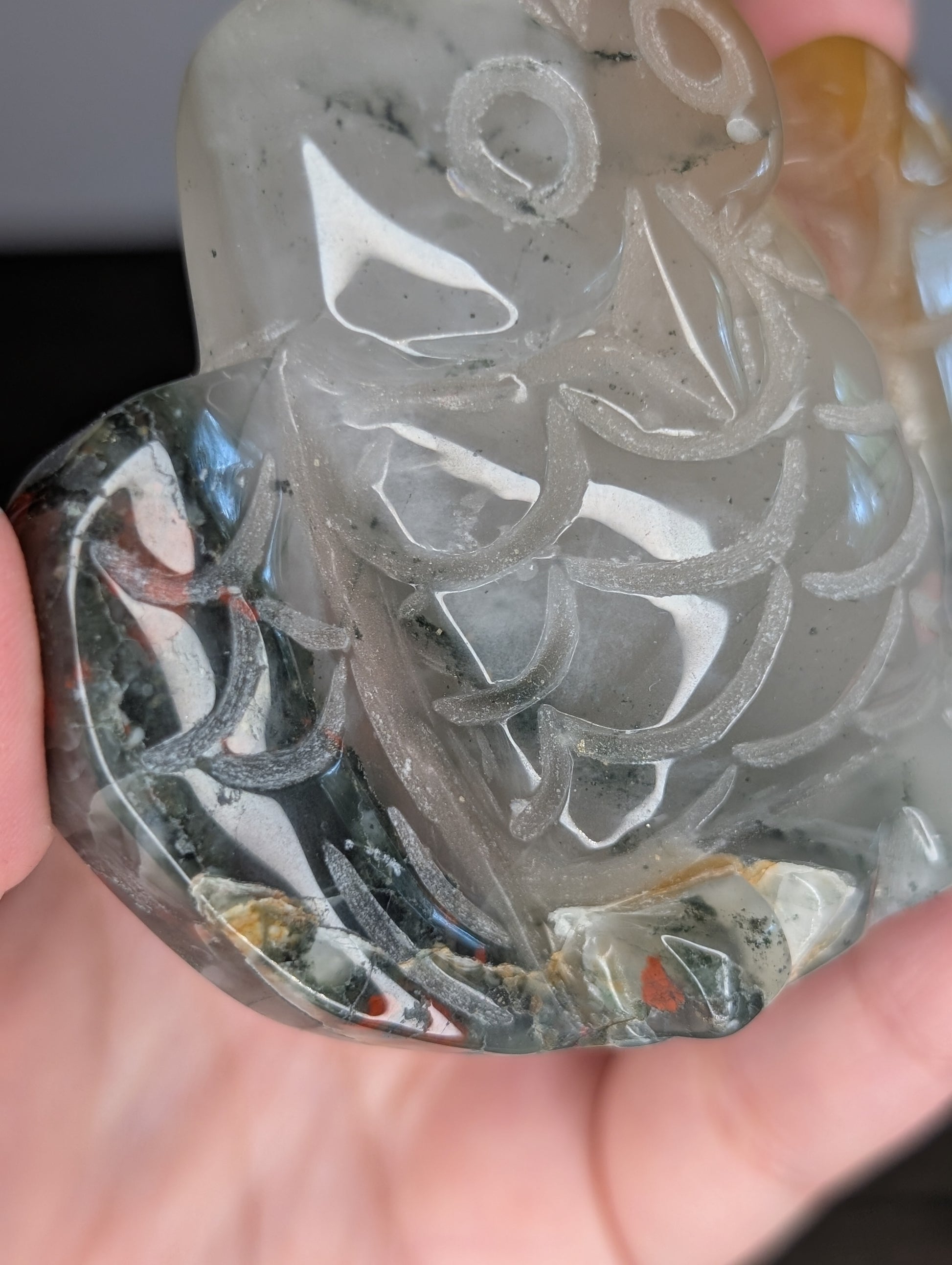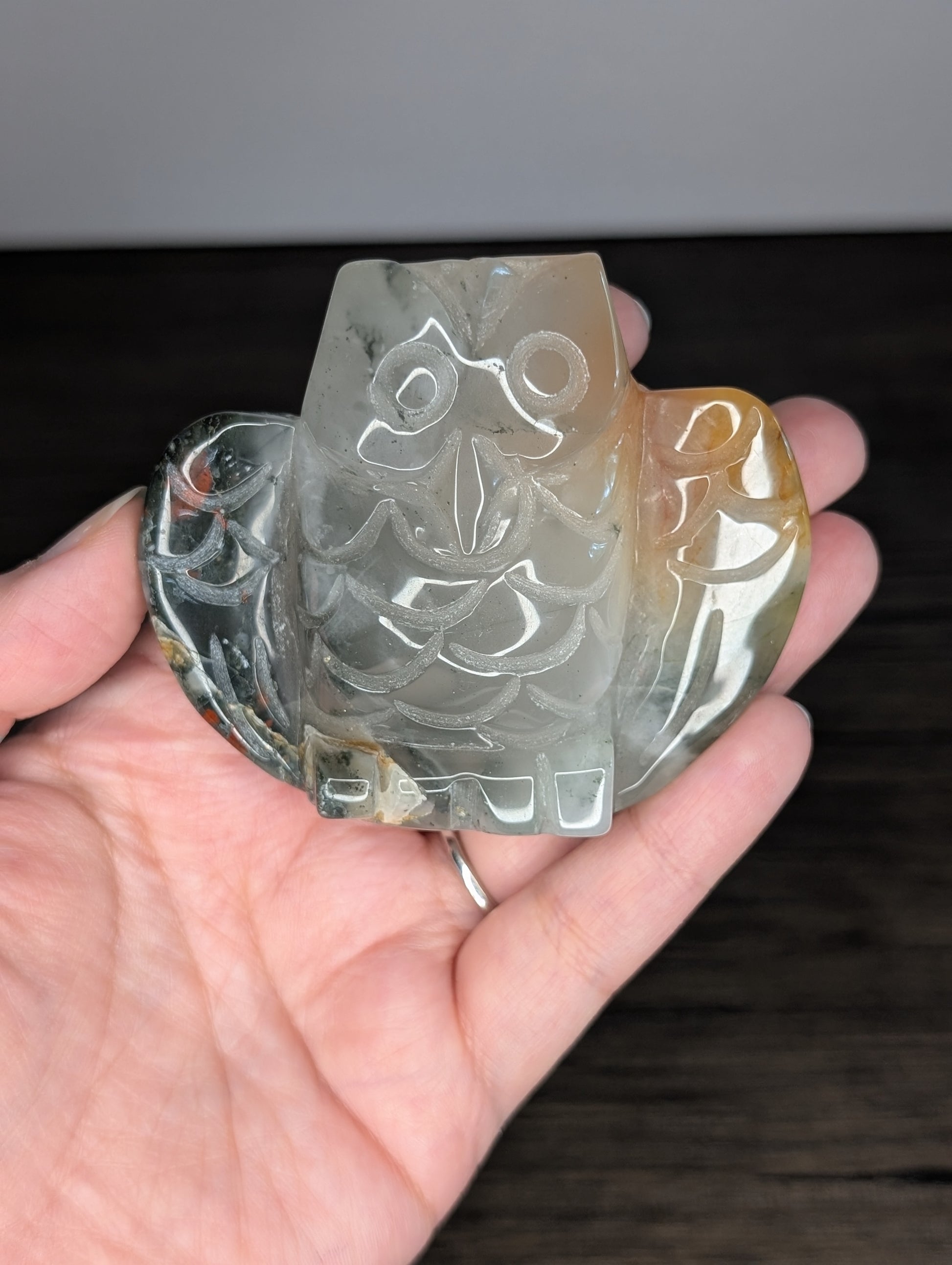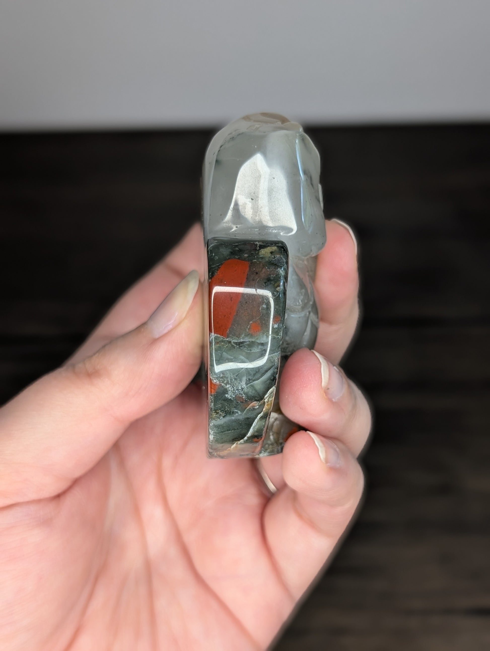 Due to is little feets being shaped unevenly, he does have a slight wobble but stands just fine.